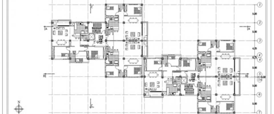 در پلان معماری این بلوک ها در هر طبقه 6 واحد با متراژ 100 الی 120 متر مربع طراحی گردید. دید مناسب، جهت گیری خوب برای دریافت نور آفتاب و ... از هدف های طراحی معماری این پروژه بود