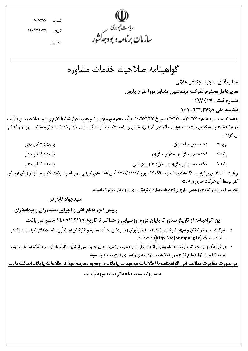 گواهی صلاحیت بندر سازی و سازه های دریایی